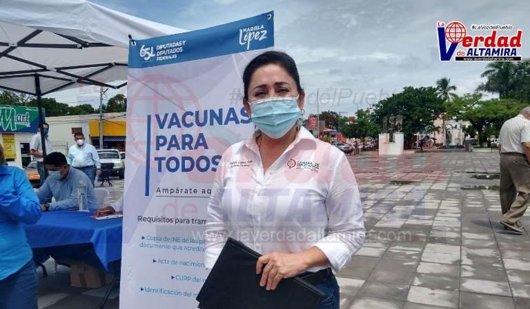 La Diputada Federal panista Mariela López Sosa visitó el municipio de Altamira en donde instaló un módulo de amparo para que padres de familia soliciten al Gobierno Federal que sus hijos menores de 18 años sean vacunados contra la pandemia del coronavirus.