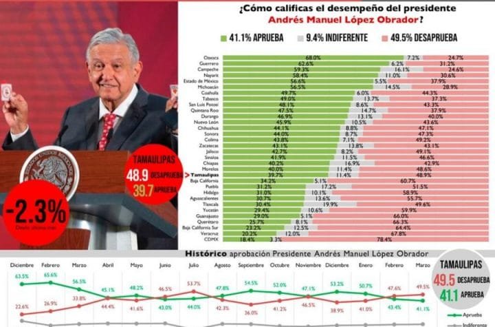Tamaulipas entre los 20 estados del país, que más desaprueban al presidente.